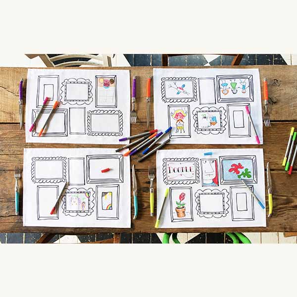 Colorea el mantel individual con tus propias ideas. Los niños pueden divertirse mucho coloreando y dibujando mientras esperan comer.  Es una ¡idea perfecta y divertida de regalo, de dibujo creativa, para niños! Se incluye un juego de 10 rotuladores de punta de fieltro lavables. Toda la tinta desaparece después de un lavado tibio, dejando el mantel individual listo para hacer nuevos dibujos. Completo en su propia mini bolsa de mano, el mantel individual de algodón es ideal para mantener a los niños entretenidos en la mesa, ya sea en casa o cuando salen a comer, y es excelente para usar en excursiones de un día, mientras visitan a la familiares o cuando viajan.