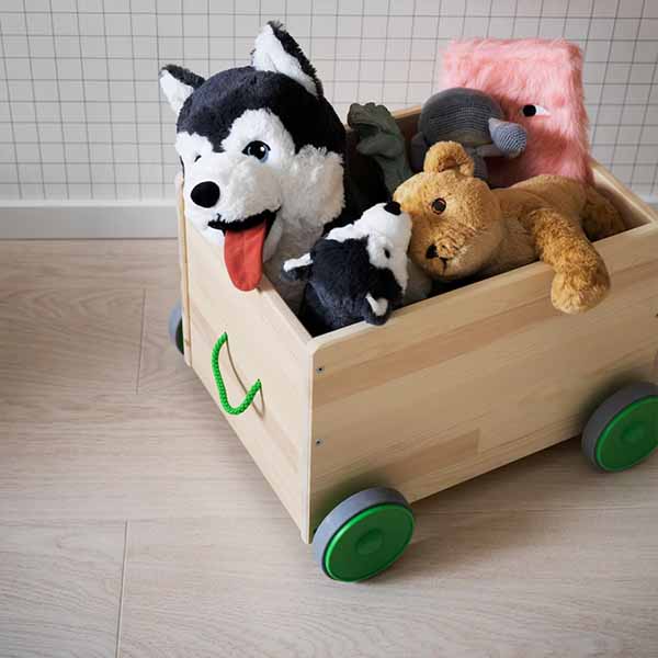 The toy storage with wheels makes it easy for your child to collect and move toys from one room to another.