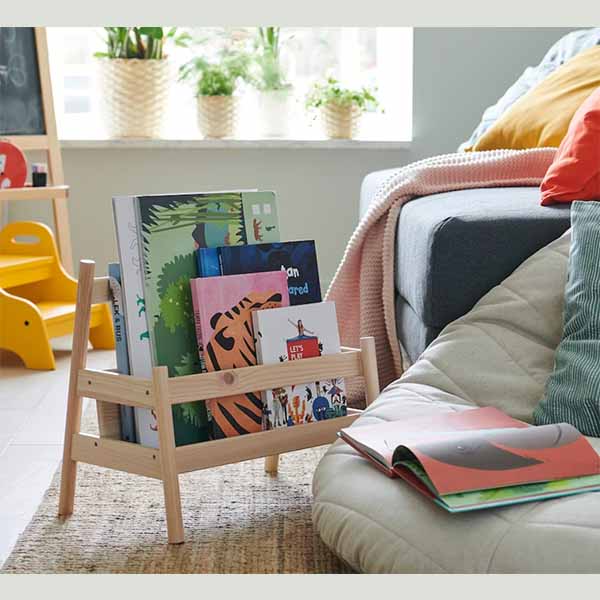 This book display lets your child collect and reach their books without your help. Your child can easily find that favourite book, since all the covers are visible. You can easily bring the book display to your favourite corner when it’s time for a story.