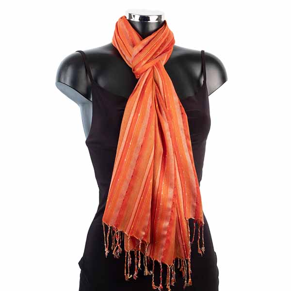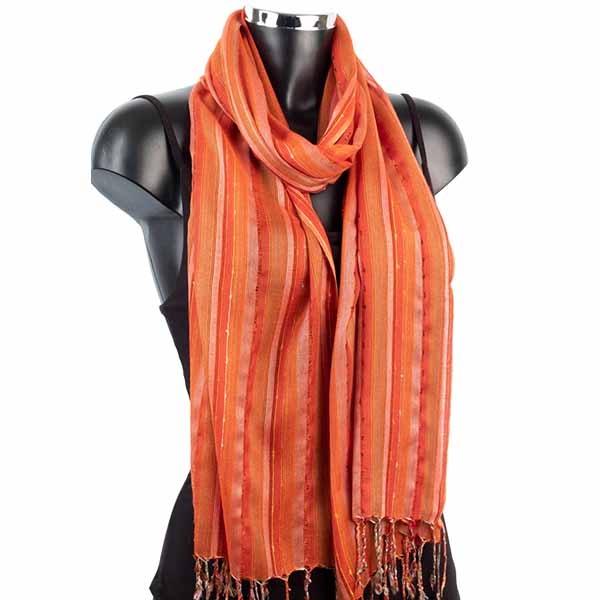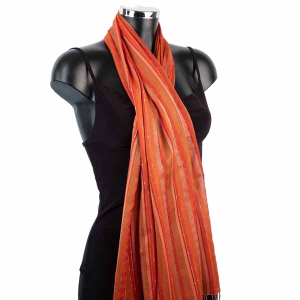 Chal rayado clásico color naranja – Classic striped orange shawl