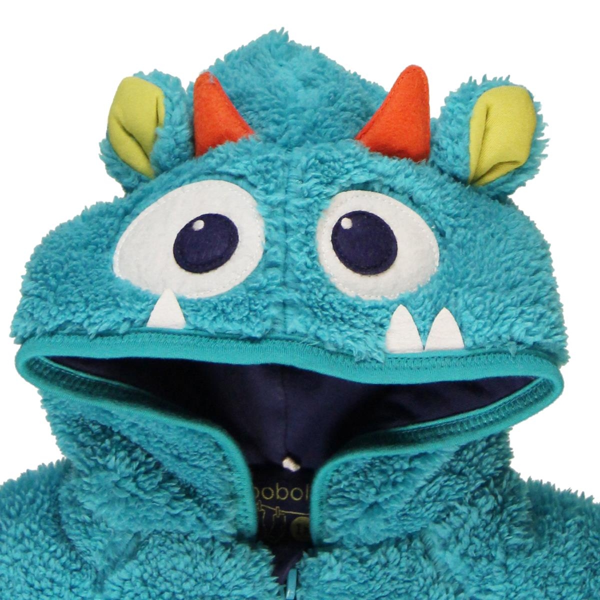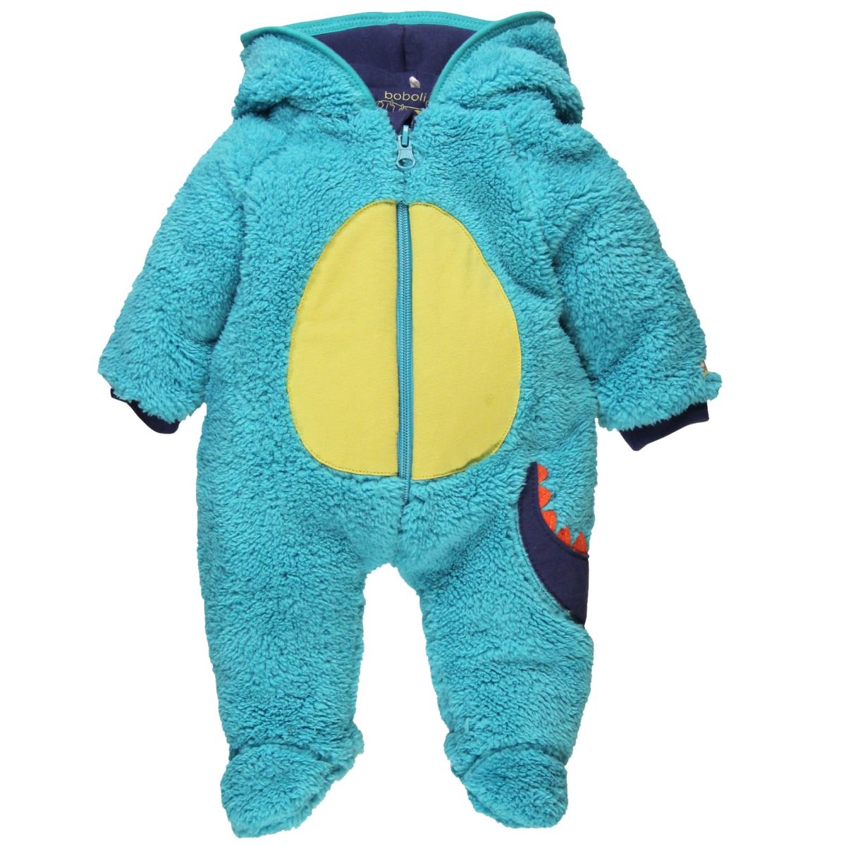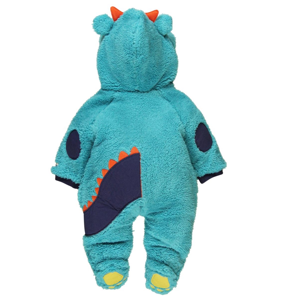 This fun blue monster onesie with feet and a hood is great for staying warm on cold Winter days. Fastened with a zip down the front.